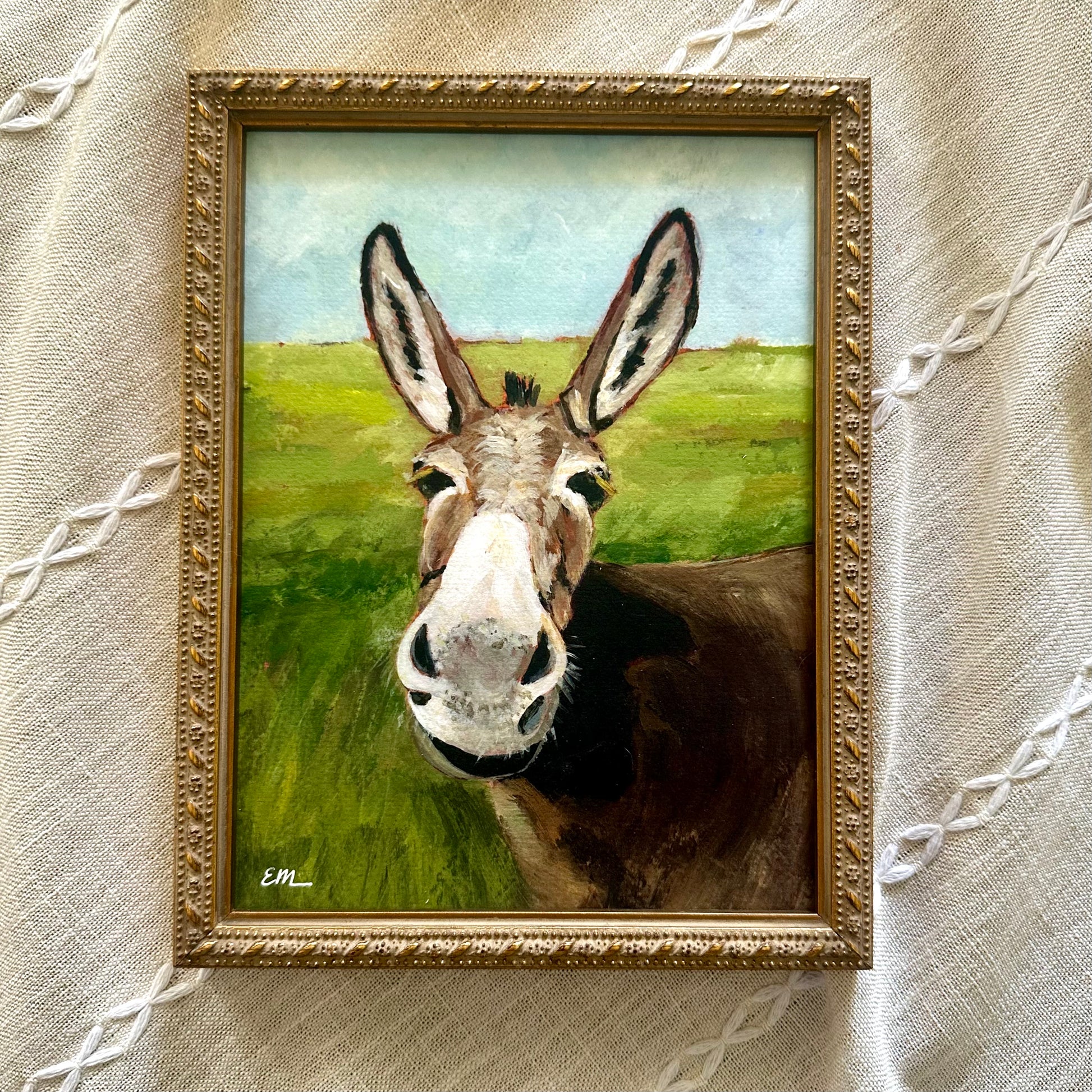 Framed fine art print of the original artwork “Up Close Donkey”